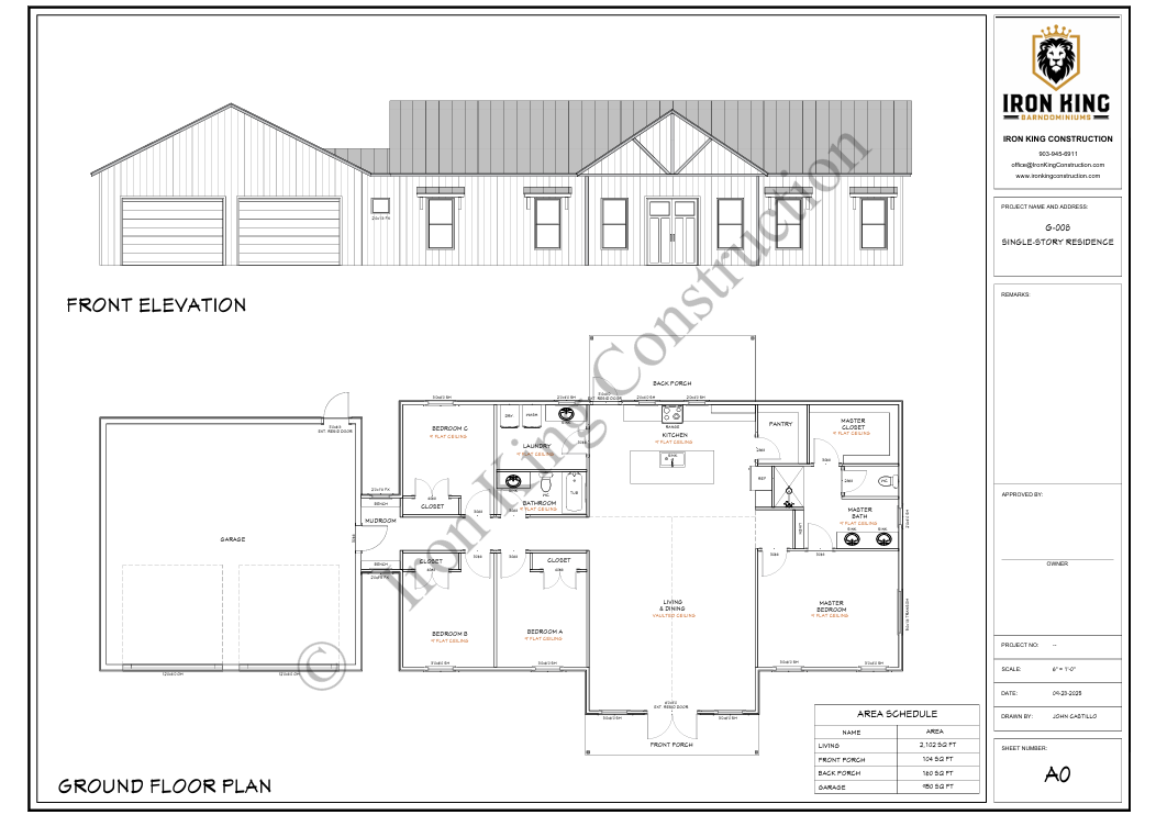The G-008 is a 4 BR / 2 BA barndo single storey residence.