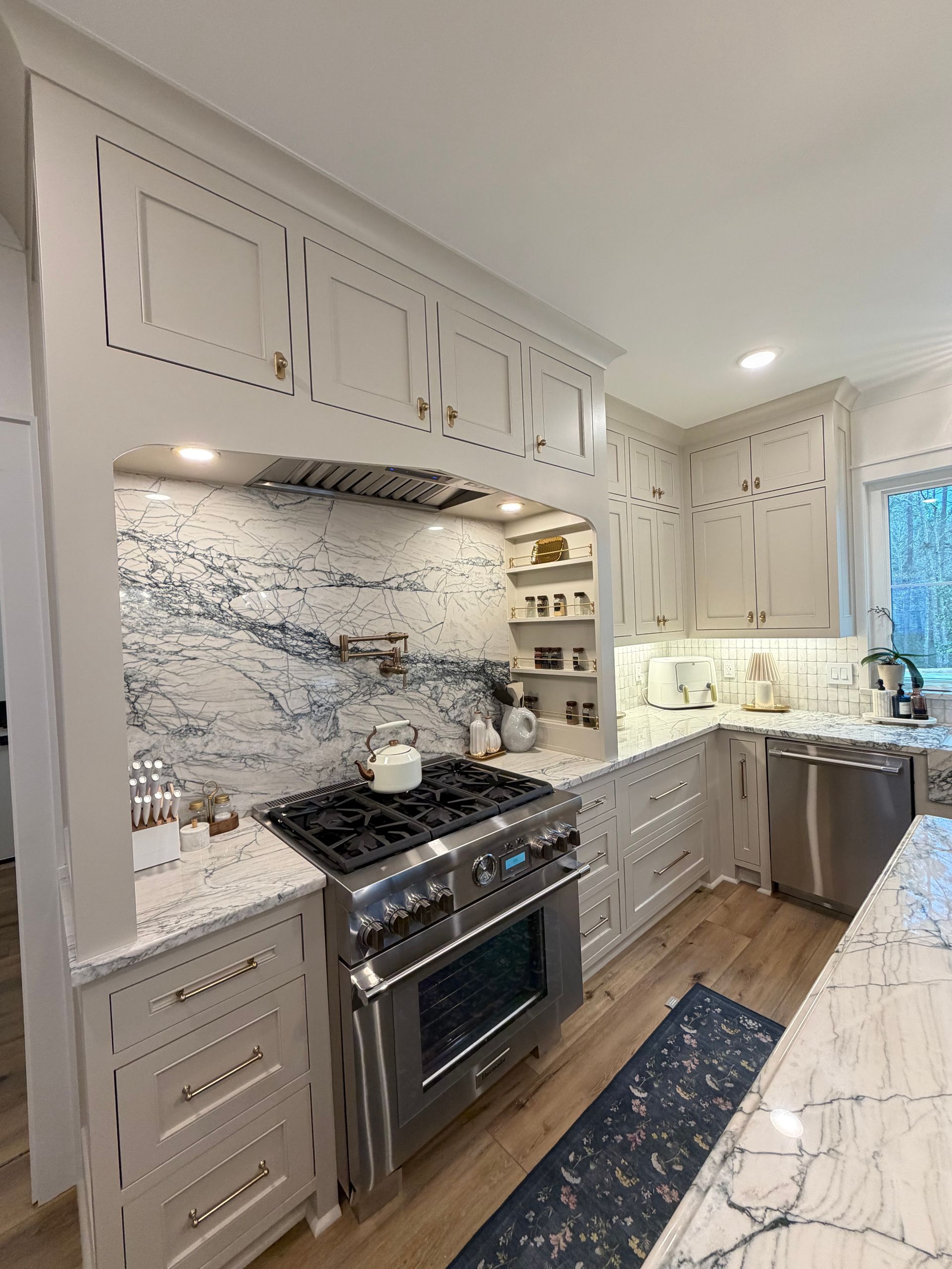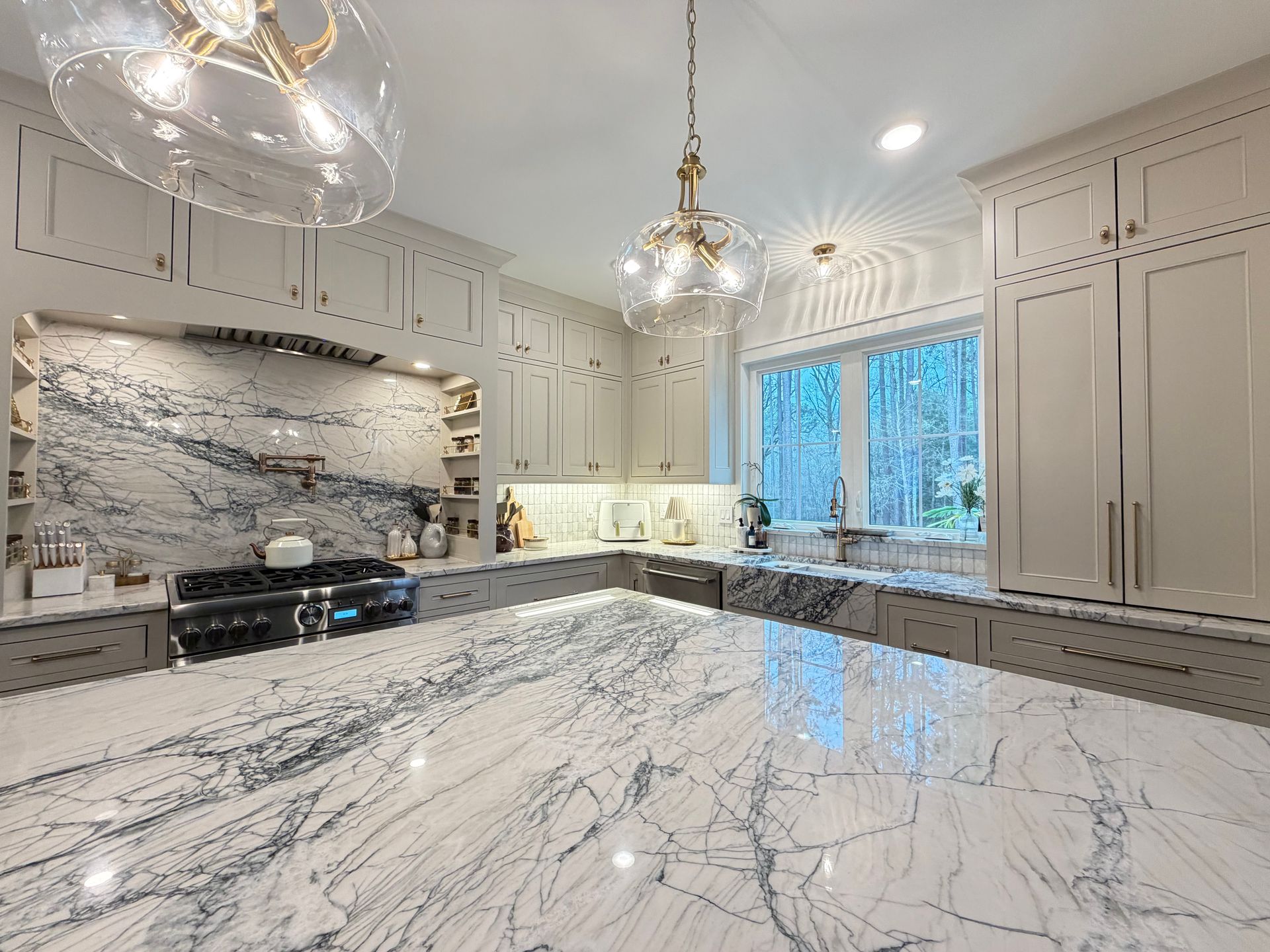 - Custom cabinetry, countertops, and fixtures