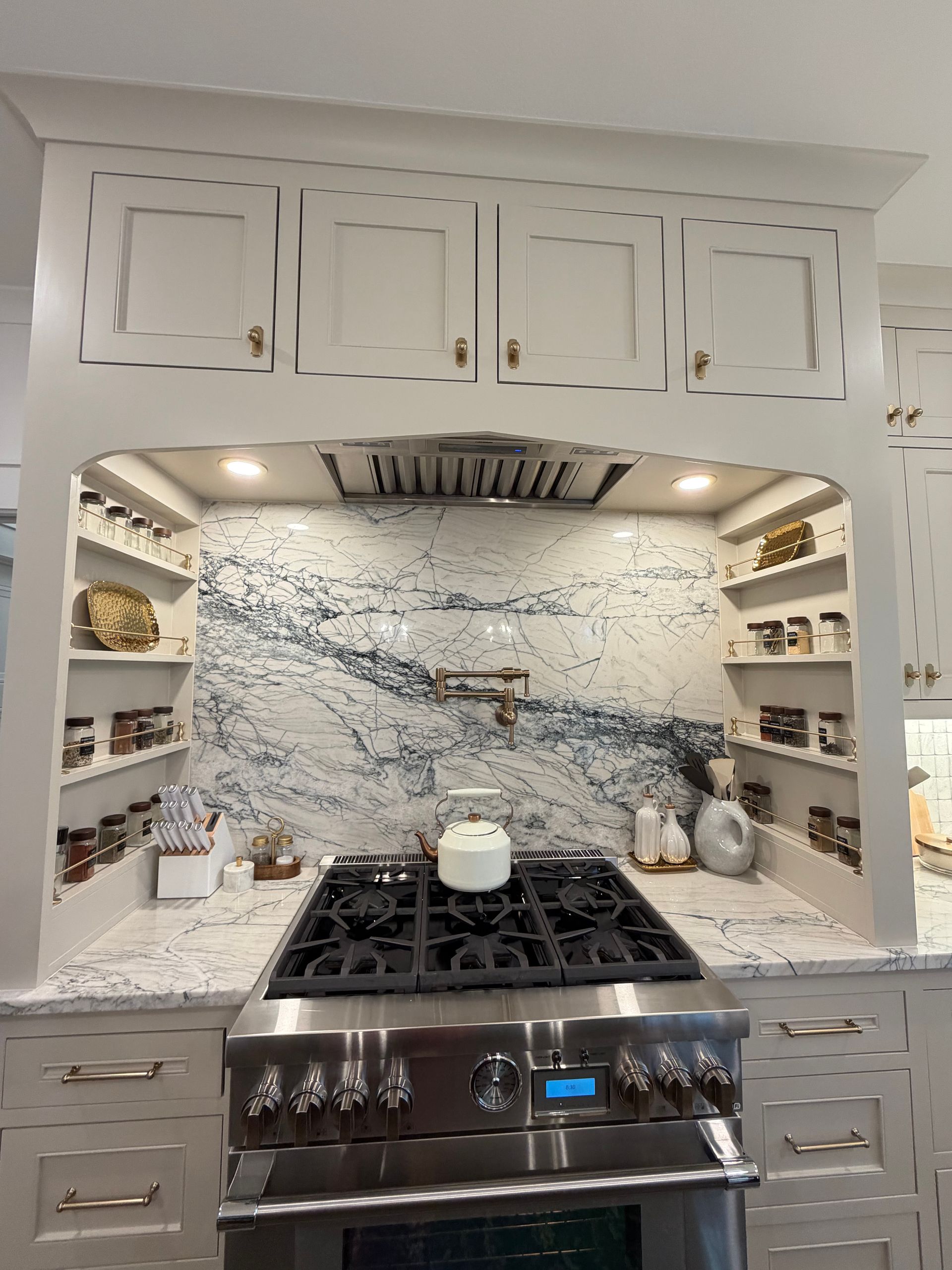 - Chef-inspired kitchens: Enjoy custom-built cabinetry, a convenient pull-out trash drawer, and a stunning custom-designed vent hood.